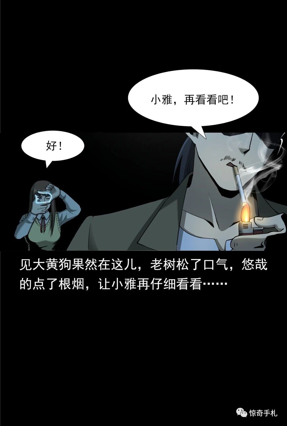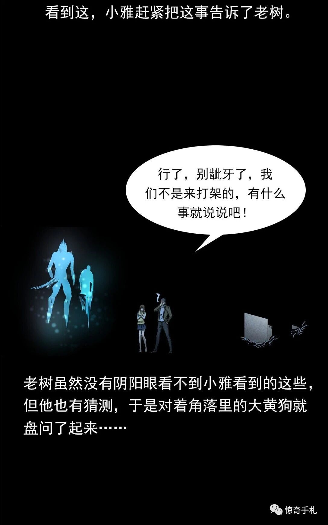 见大黄狗果然在这儿,老树松了口气,悠哉的点了根烟,让小雅再仔细看看,这一看,小雅顿时倒吸了一口凉气,就见那大黄狗的身后,除了它原本的人形灵魂之外,竟然还有一个老人的灵魂,那老人的灵魂也和大黄狗一样,散发着一股浓重的怨气,看到这,小雅赶紧把这事告诉了老树。老树虽然没有阴阳眼看不到小雅看到的这些但他也有猜测,于是对着角落里的大黄狗就盘问了起来,也许是感受到了面前的两人并没有恶意,又或许是只有他们能听到自己的倾诉,这一次它没有抵触,把自己的“血海深仇”讲了出来…彼岸姐妹第43话之《灵犬(下)》