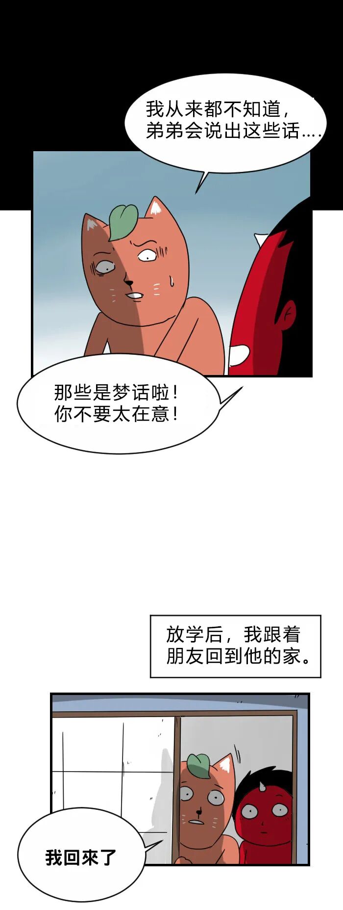 百鬼夜行志之《家里的弟弟》 我曾经看过猫咪睡觉翻白眼,嘴巴不停地喵喵叫,那看起来真的像是被附身一样.... 话说回来,如果猫咪真的会讲话的话,你觉得,它会对你说什么呢?