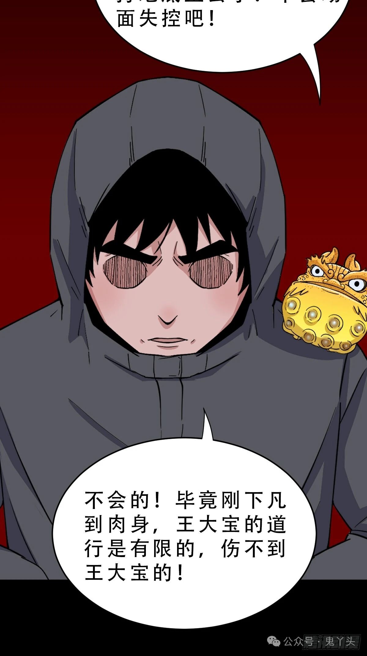 1085(279520170) 评论 斗厌神第285话之《破丁巳:左脚戴金,右脚戴银,金可成仙,银可称王。但是这里金镯印一下变左脚一下变右脚怕不是