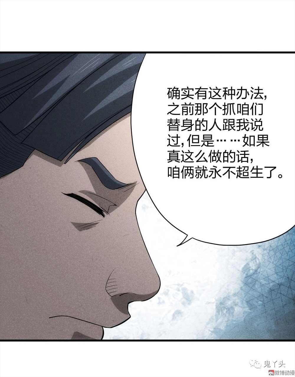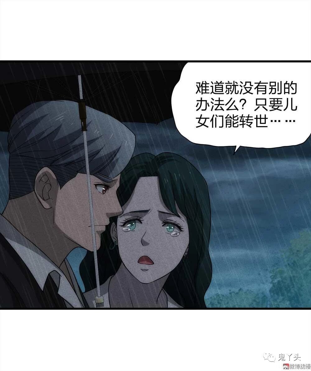 父母本想抓他们做替身的,但出于内心深处良知的原因,不想陷害孕妇家庭,到最后,父母仅剩的时间里用灵魂将大桥撑起,将儿女送入车中,投胎到孕妇体内,49天期限已到,父母的灵魂慢慢淡去,而懵懂的孩子看着远去的父母进入了新的家庭……