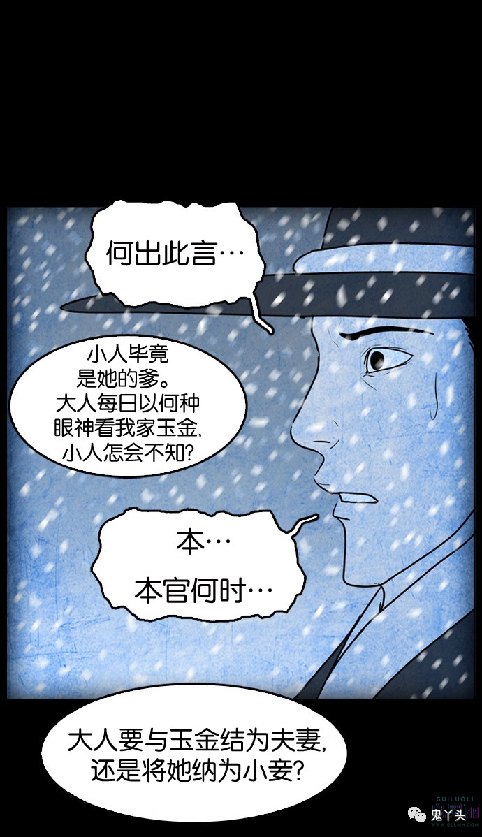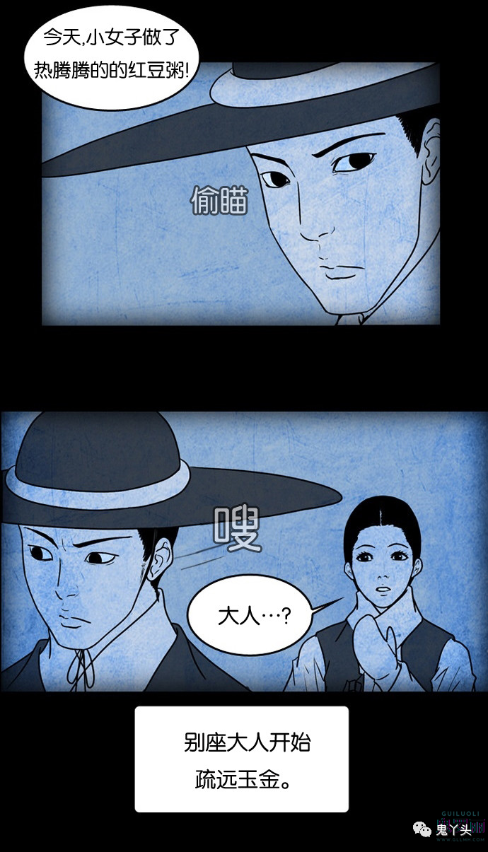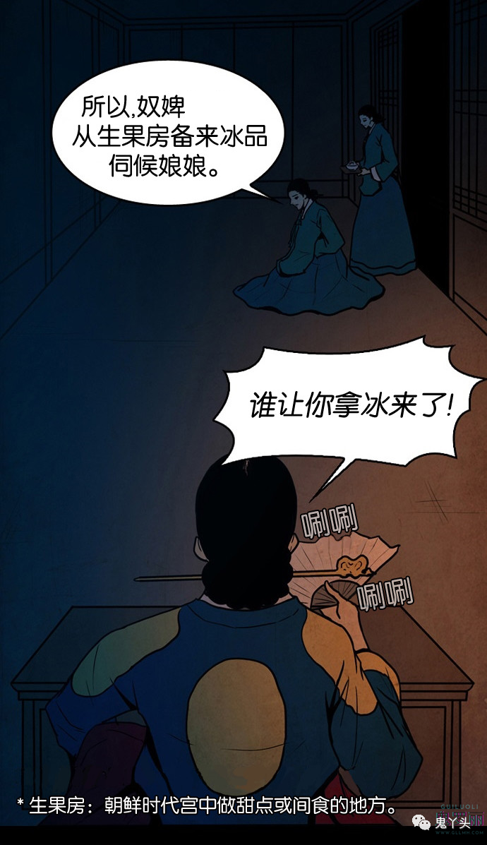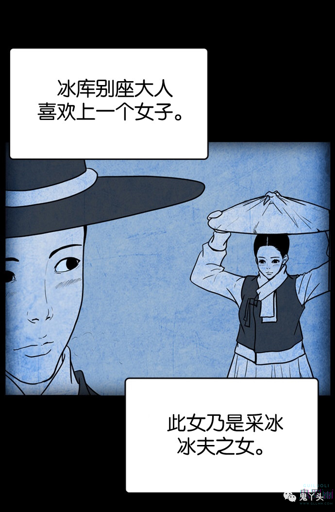 鬼村传说之《冰库》 听故事的娘娘叫郑照荣,男主叫做郑之产,女主(女鬼)叫做玉金 第一个故事是的编造的,因为经历人只有一个郑之产(冰库别座),所以他给外人说什么都可以 这个女鬼是被听故事这个女的的哥哥故意杀死的,女鬼的爸爸想知道事情的真相就把男