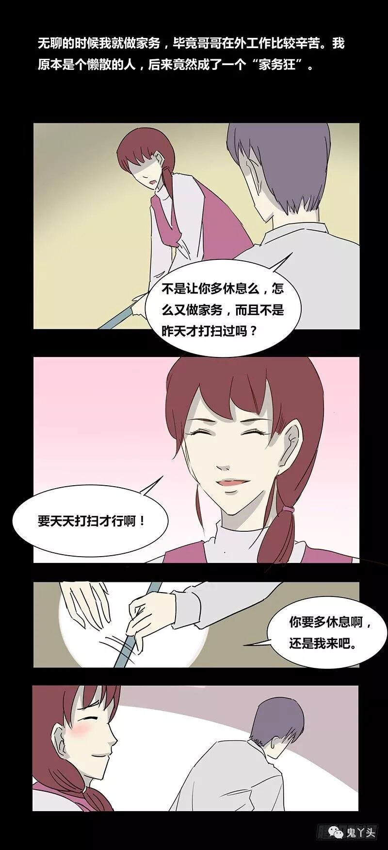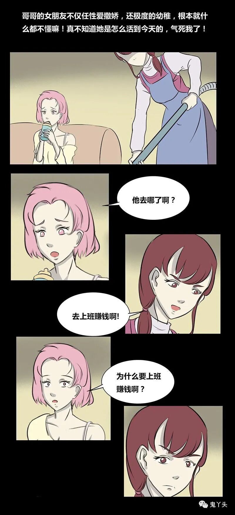 女主和男主是夫妻关系,女主结婚后一直呆在家里,每天就是打扫打扫家务,直到后来怀了孕变成了家务狂,导致患有抑郁症,后来发展成妄想症,而男主的“女友”是两人的孩子。