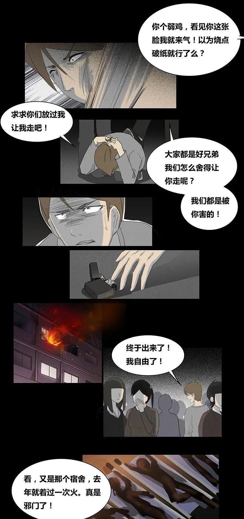 男主最后在被逼绝望中点火烧了宿舍,但结尾却是四具尸体……
