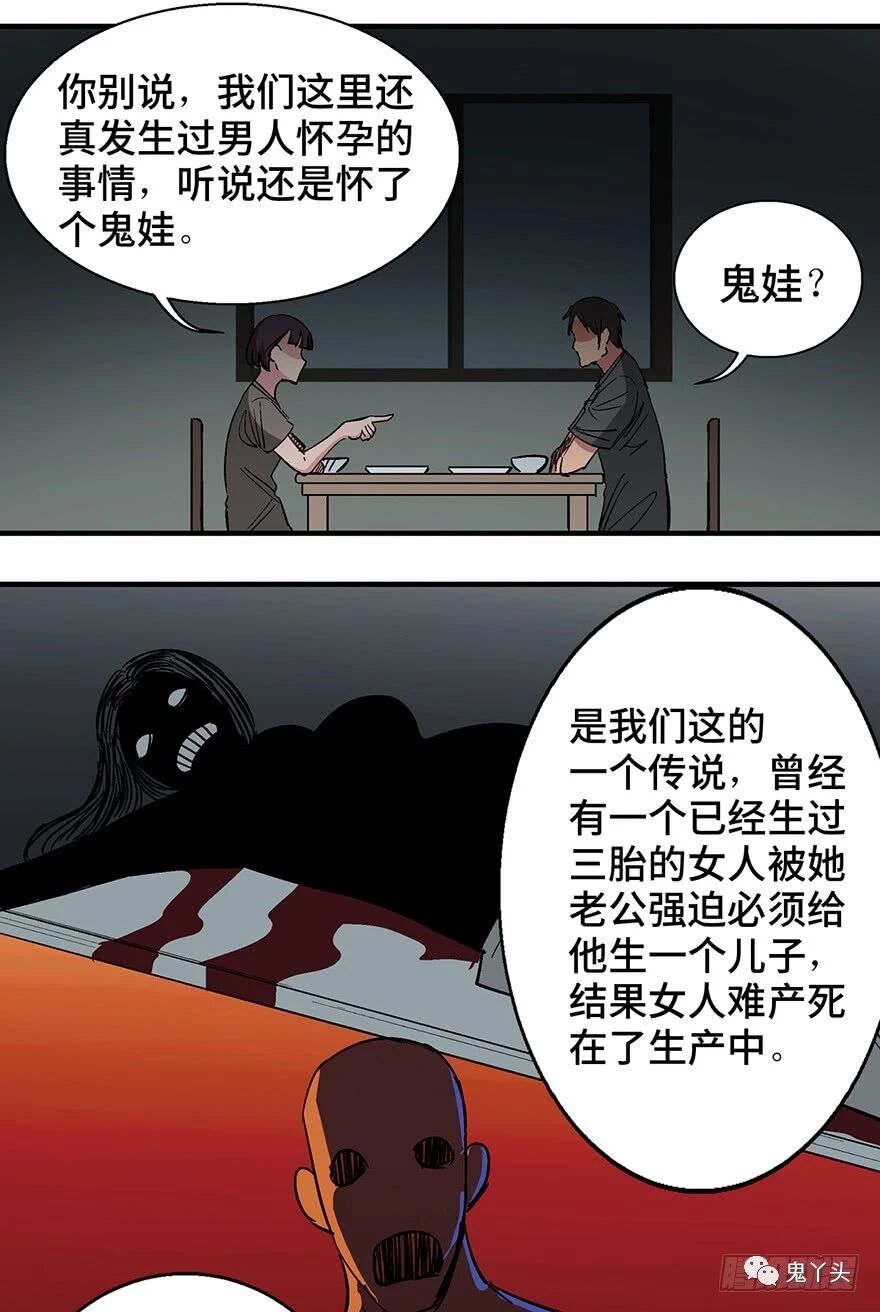 心跳300秒之《鬼娃》 渣男男主其实之前有过一段感情,因为思想封建,强迫前女友先怀孕再结婚,每天强制为前女友注射催卵针,最后导致前女友死亡,并诅咒男主,男主和现在的女主在一起后,发现自己肚子越来越大,在听女友讲了关于鬼娃的诅咒后,前往医院处理,