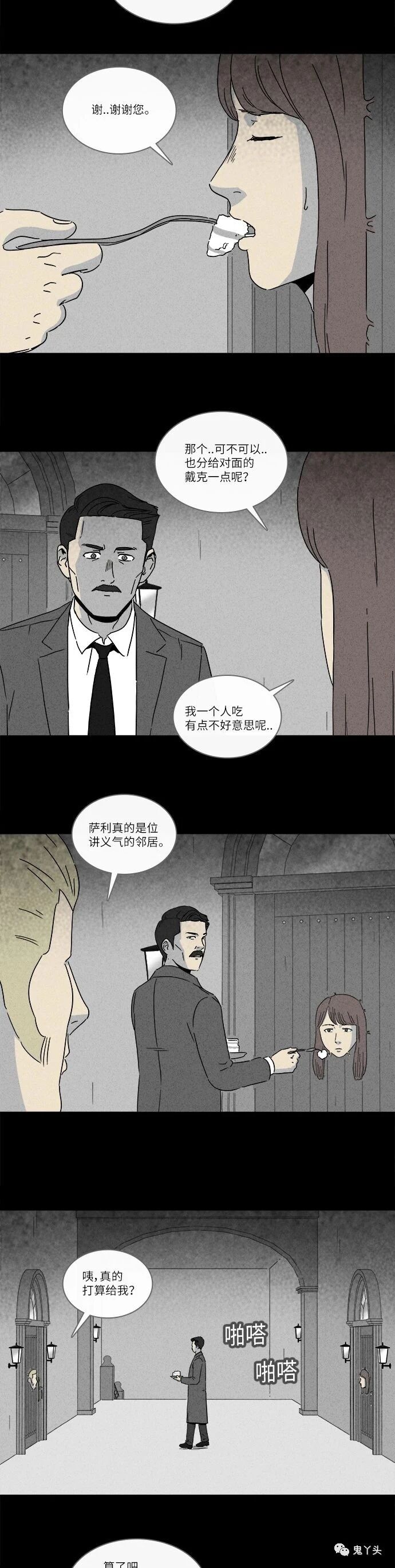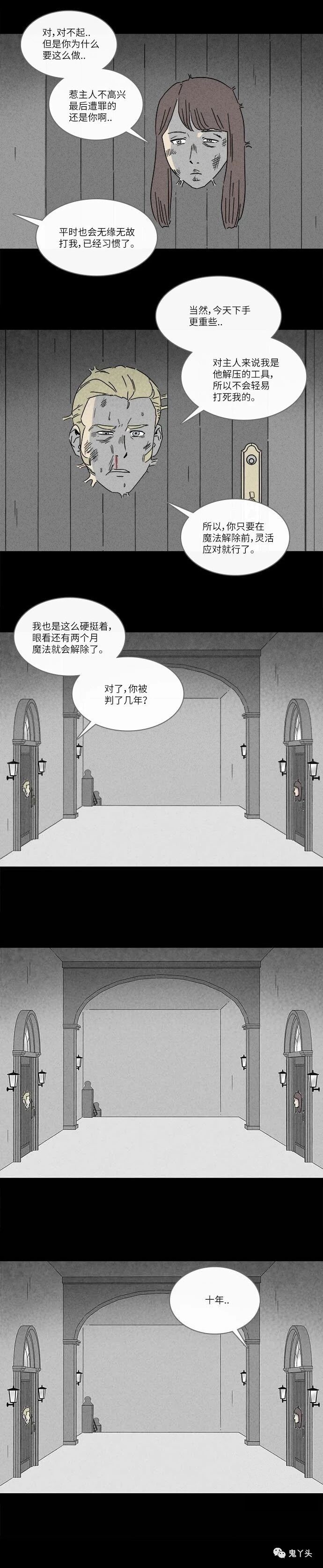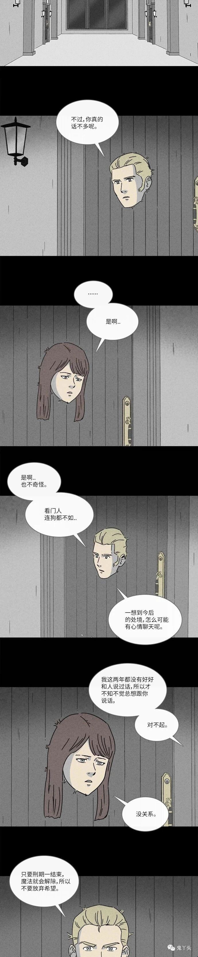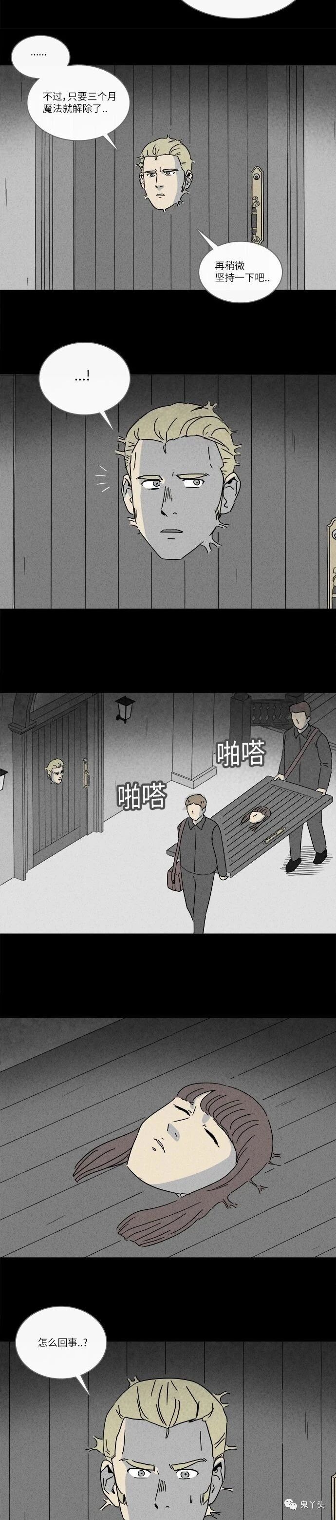 奇奇怪怪之《看门人》 魔女一死魔法解除,女主就从门里出来了。这七年女主一直待在门里面。看最后一张图桌上的小门板上还有个洞。