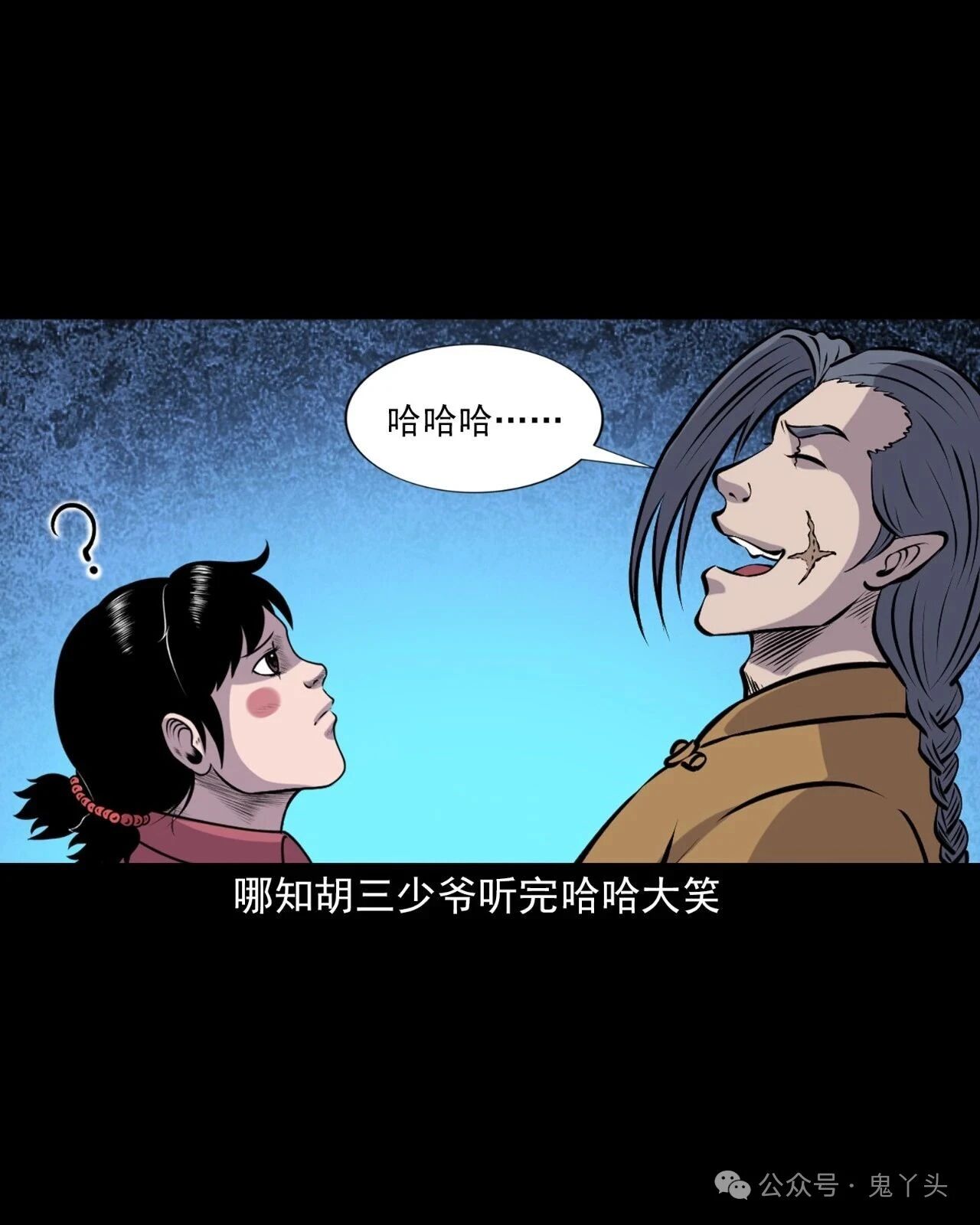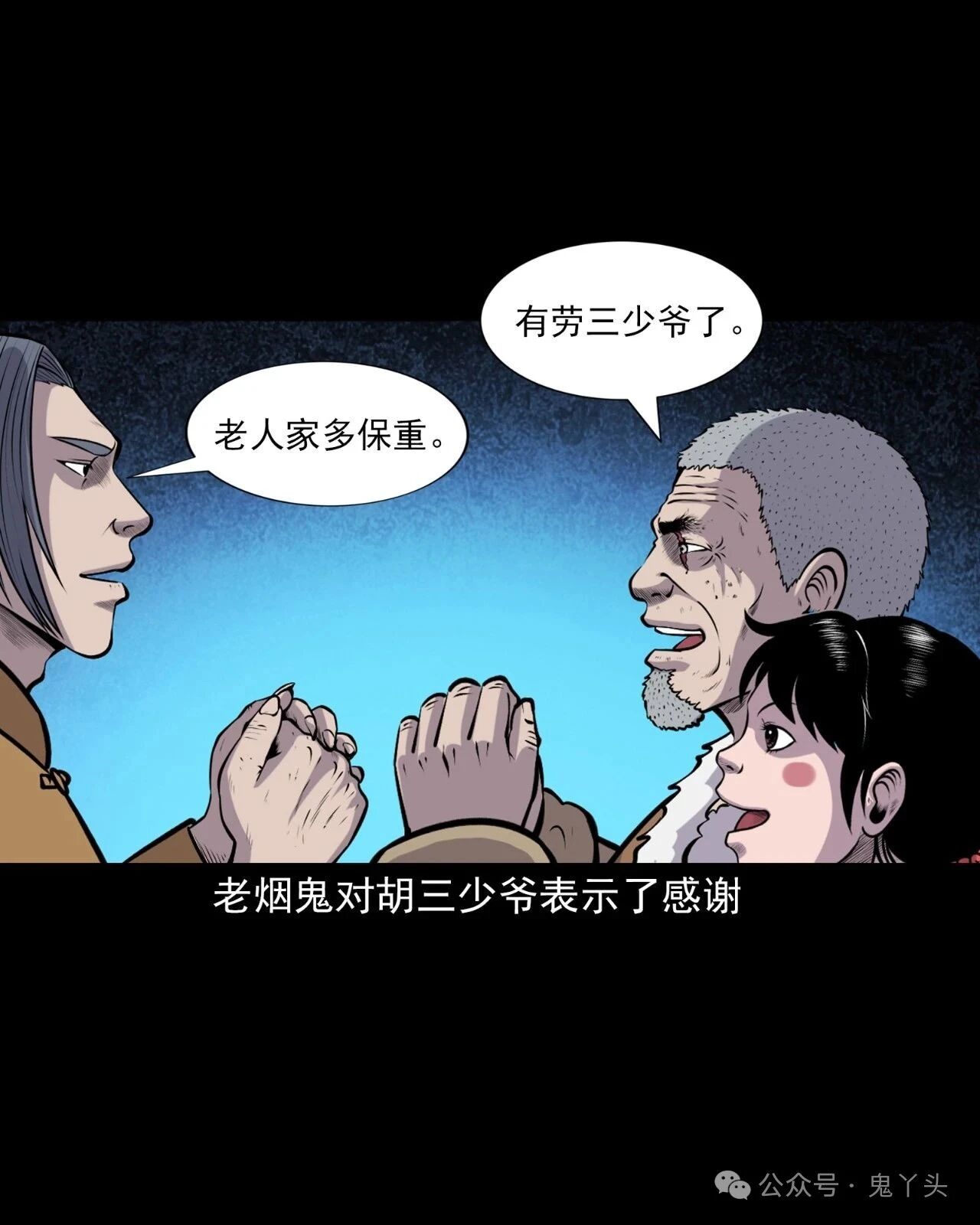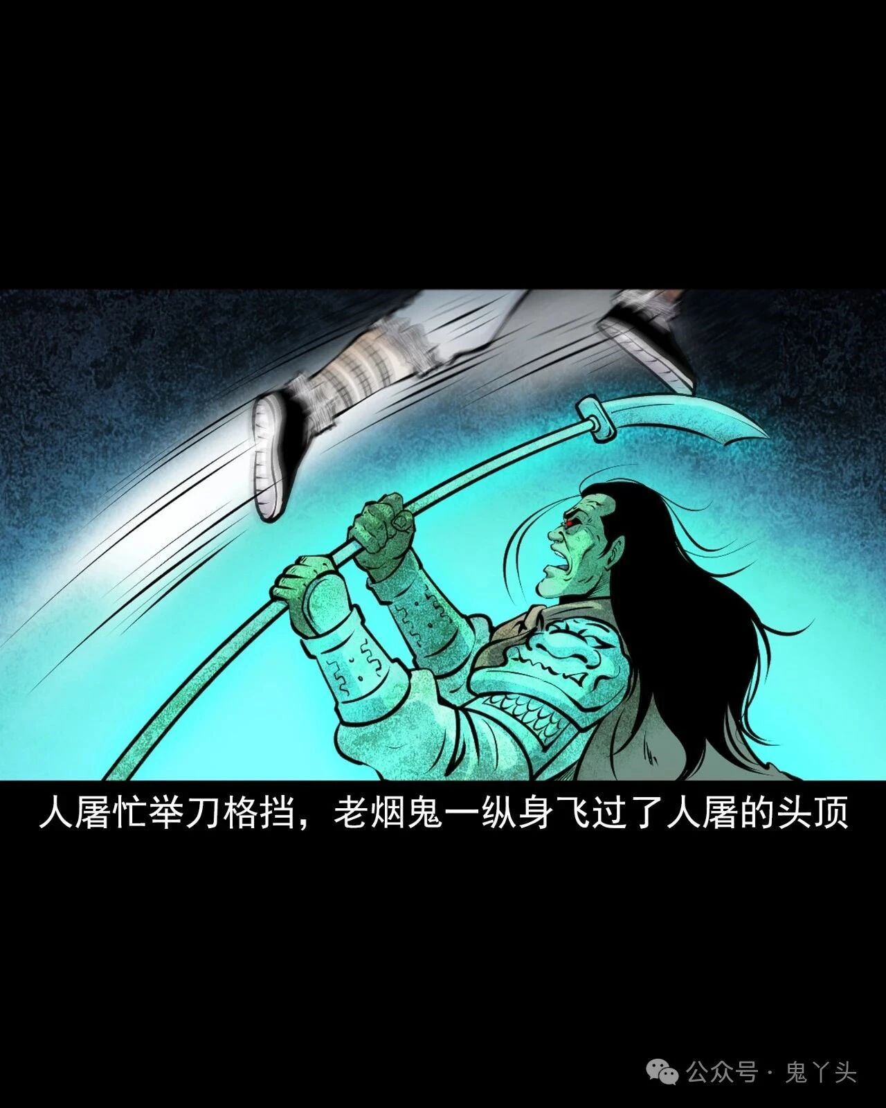 上一回咱们说到老烟鬼找到了人屠!见了面也不废话,人屠抡刀就砍,老烟鬼用双刀一迎,挡下了这一击!紧接着双刀交错夹击,直奔人屠的脖子,人屠忙举刀格挡,老烟鬼一纵身飞过了人屠的头顶,人屠仰头一看,面露惧色!老烟鬼双刀成剪直扑而下,人屠仿佛间看到了一个宿命之敌……【山神老烟鬼】第57话之《后继有人》