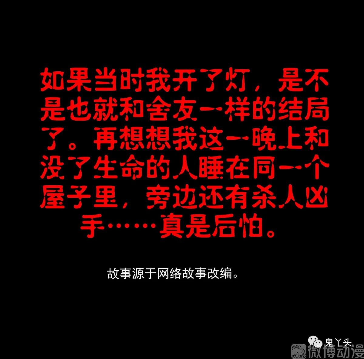 如果当时我开了灯,是不是也就和含友一样的结局了。再想想我这一晚上和没了生命的人睡在同一个屋子里,旁边还有杀人手…真是后怕。