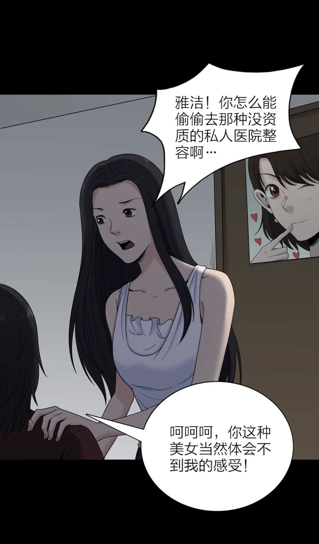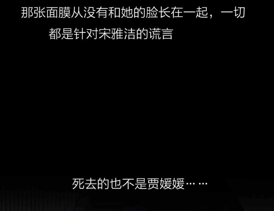 两人激烈争斗后,宋雅洁后续靠金老板力捧继续演艺之路,却没了往日演技;而死里逃生的贾媛媛剪短头发,继续拍戏,并烧掉了那张奇特的面膜,最终宋雅洁以“整容失败跳楼自杀”收场。