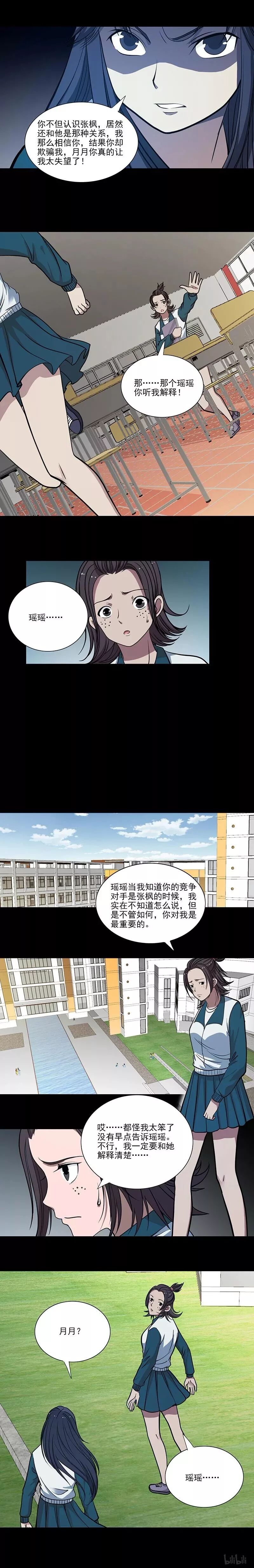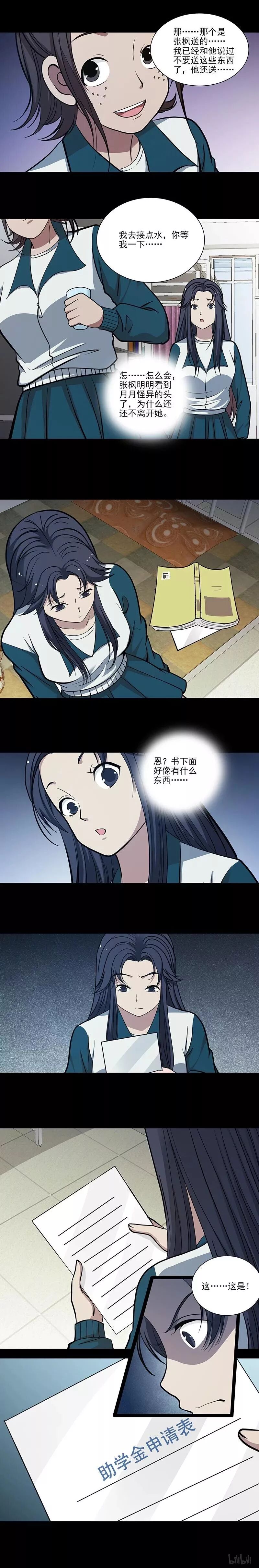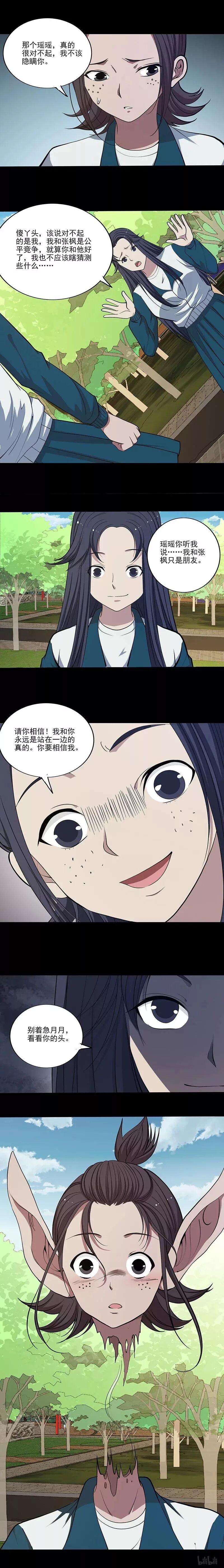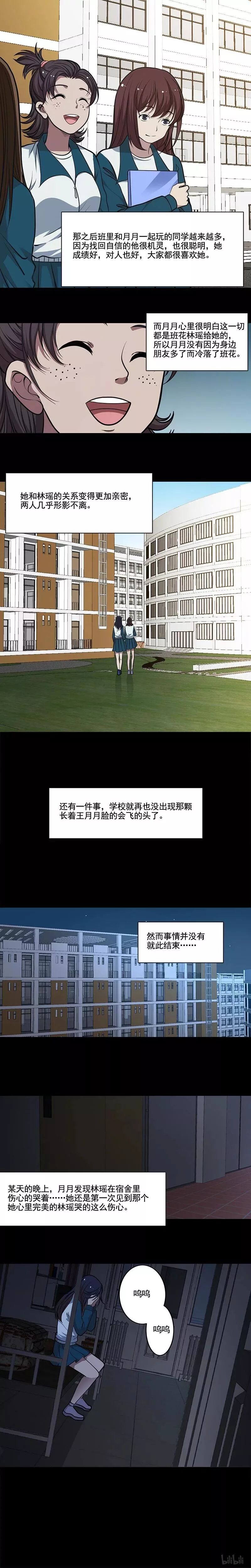 学校有诡之《会飞的头》 张枫在瑶瑶精心安排的布局下看到了月月和自己是同类后便设了这个局... 其实月月的书本里之所以有助学金的申请表都是因为张枫从中作梗,然而瑶瑶却中了他的计,而月月的身体也是被张枫藏起来的...最终月月为了救落水的瑶瑶枯萎而亡,