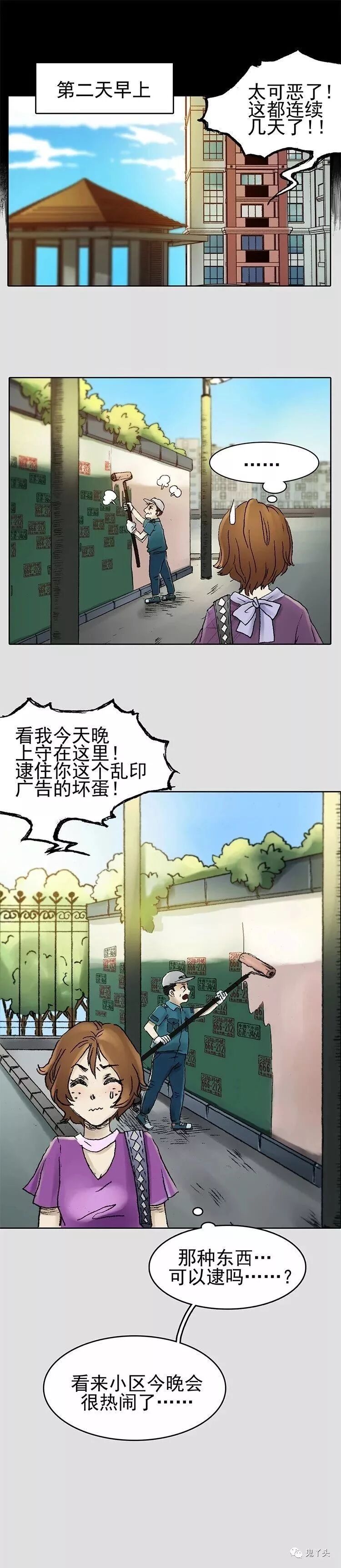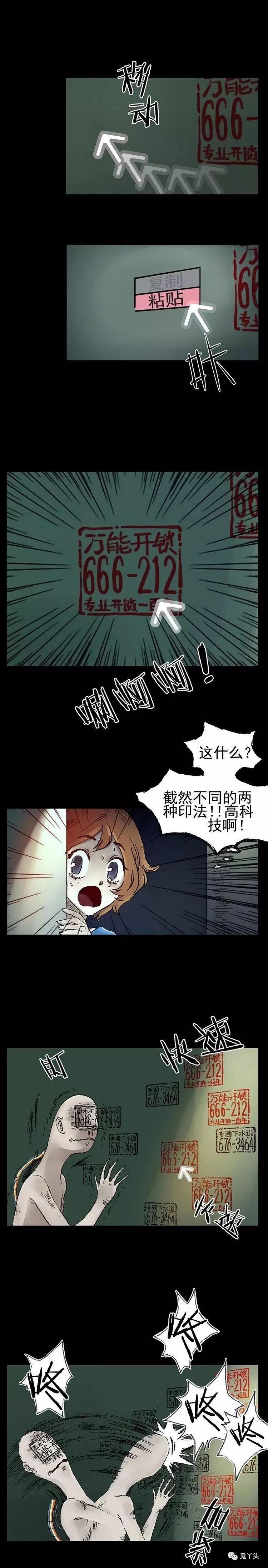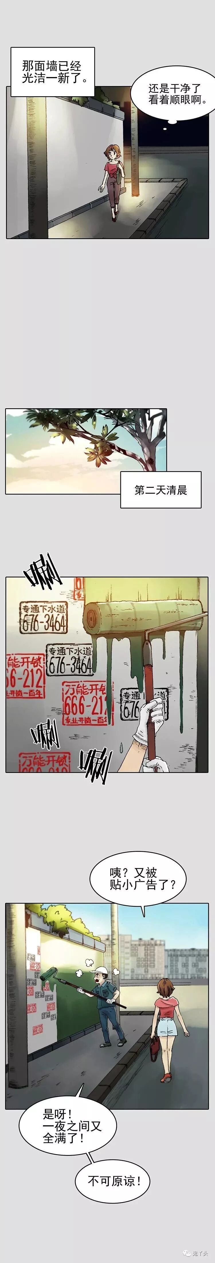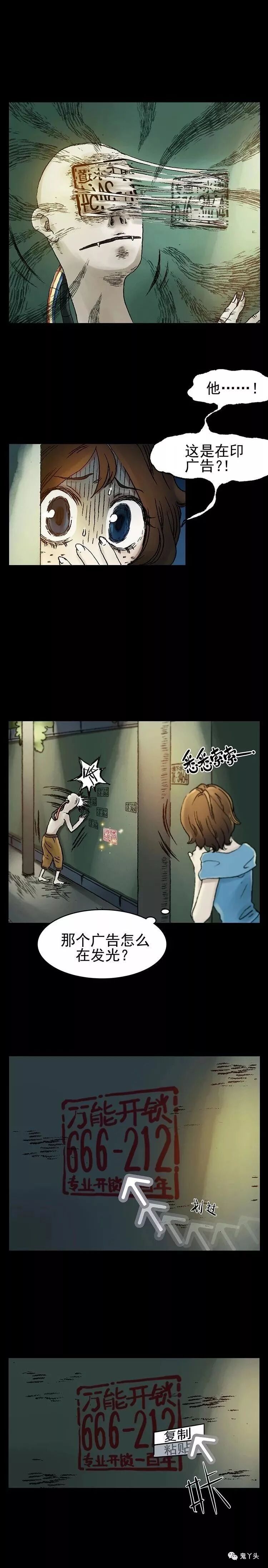 奇悚妄想之《小广告印刷》 漫画中的这位大哥竟然想出在头顶刻上模板,往身体里输墨水,用头往墙上猛磕这种惨绝人寰,呸! 是这种方便快捷的方式,真是让丫头忍不住产生了头痛的感觉 另外还有复制粘贴这种高科技有这么好的技术,干点啥不成,贴小广告屈才了吧